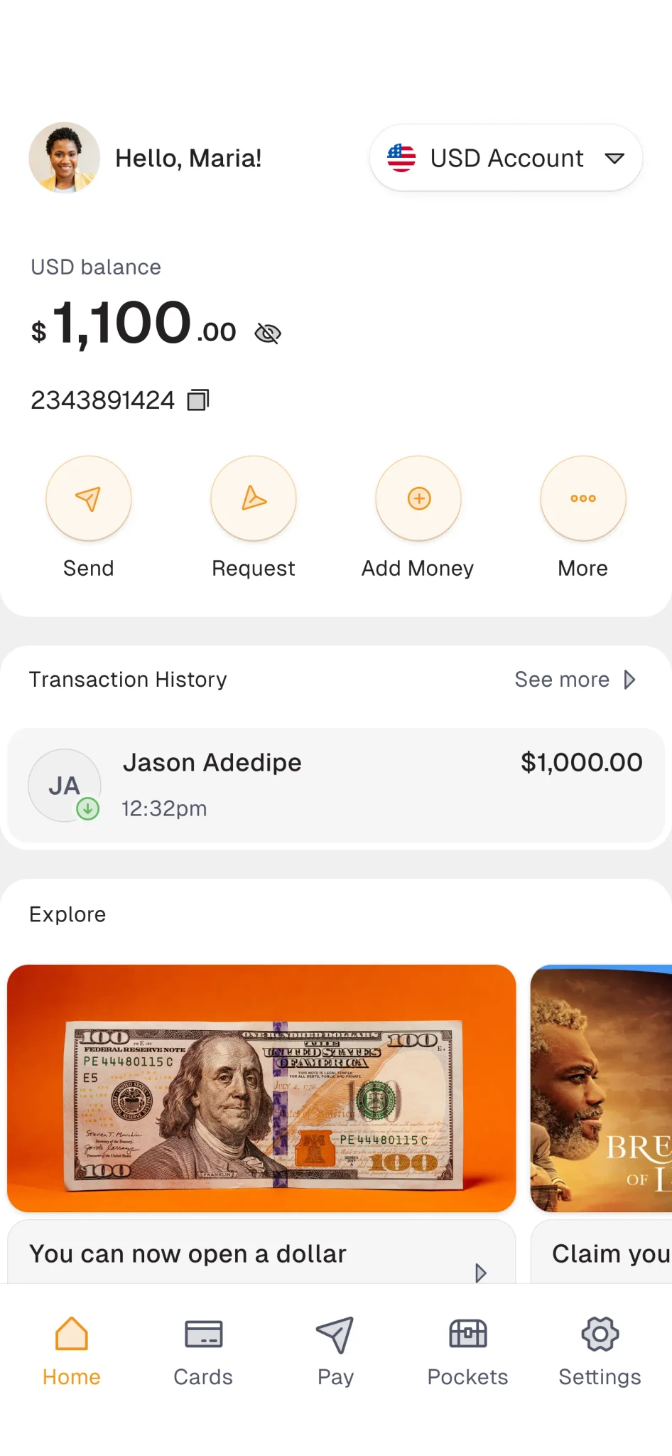 Multi-currency means you can hold and manage different currencies in your Paga wallet, such as NGN and USD, all in one place.